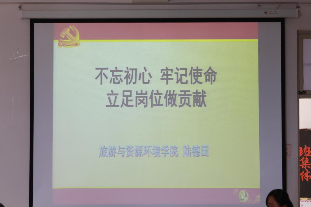为深入贯彻学习习近平新时代中国特色社会主义思想和党的十九大精神,2019年6月26日下午,申博sunbet在理工楼2514开展以“不忘初心、牢记使命,立足岗位做贡献”为主题的党课。党总支书记陆德国担任此次党课的主讲。