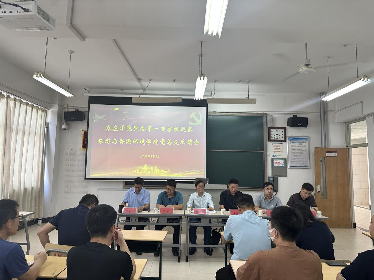党委第一巡察组组长王在明代表党委第一巡察组全面反馈了对旅游与资源环境公司党总支的巡察情况,客观评价了旅游与资源环境公司党总支取得的成效,实事求是地指出了存在的问题,并提出了整改的意见和建议:进一步提高政治站位,加强和改进思想政治工作,积极推进高等教育综合改革;深化全面从严治党,严守党的政治纪律和政治规定,切实履行好管党治党主体责任;进一步加强党的组织建设,严肃党内政治生活,发挥好党组织的政治引领作用;强化班子建设,全面落实党总支主体责任,扎实做好巡察发现问题整改工作。