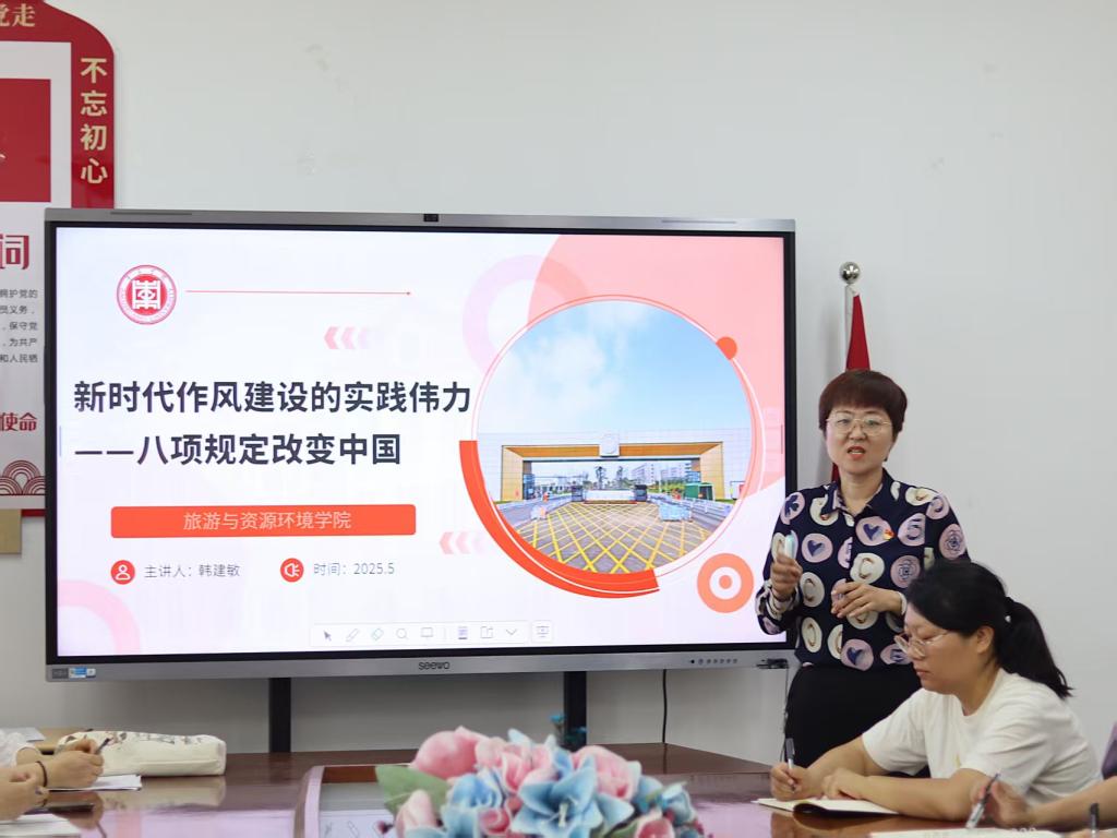 为深入贯彻落实中央八项规定精神,扎实推进作风建设,5月21日,申博sunbet在豁然楼A415会议室召开新时代作风建设的实践伟力——八项规定改变中国主题教育党课活动。此次党课由公司党委副书记韩建敏主持,公司全体教师党员参与学习。
