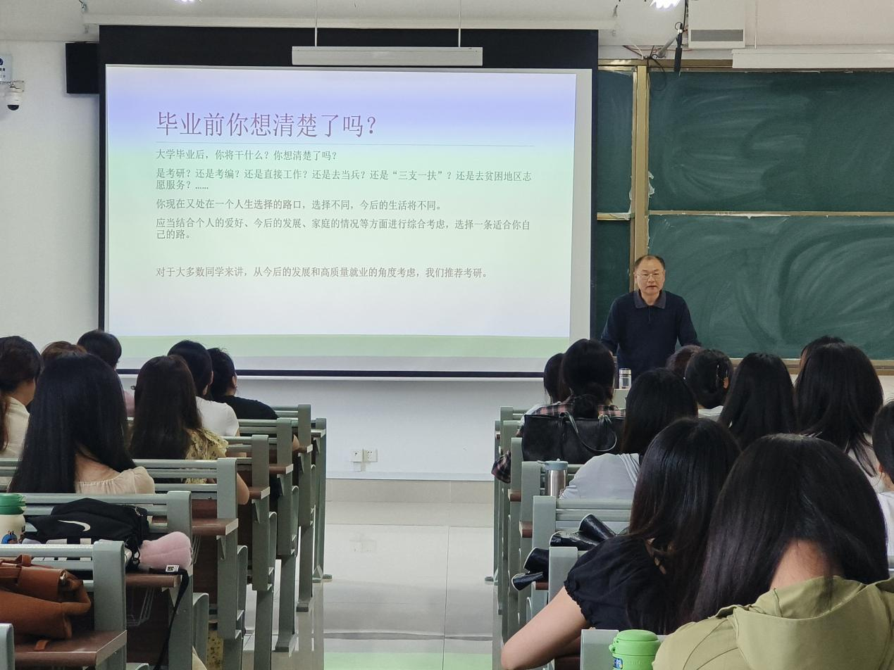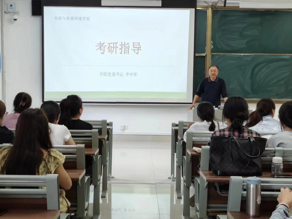 李中军分别从考研的必要性考研基础知识、2024届员工考研总结、如何选择一志愿公司、思考和想法五个方面向同学们讲解当前旅游与酒店专业的考研现状。会上,李中军强调了考研对于个人学术发展和职业规划的重要性,并指出随着旅游与酒店行业的蓬勃发展,当今社会对高素质、高层次人才的需求日益旺盛。李中军指出,考研的关键在于学好英语,鼓励同学们要有恒心和毅力进行各科目的复习,考研不仅仅是对知识的检验,更是对心态和毅力的考验,并鼓励同学们坚定信念,以积极的心态面对考研路上的挑战。