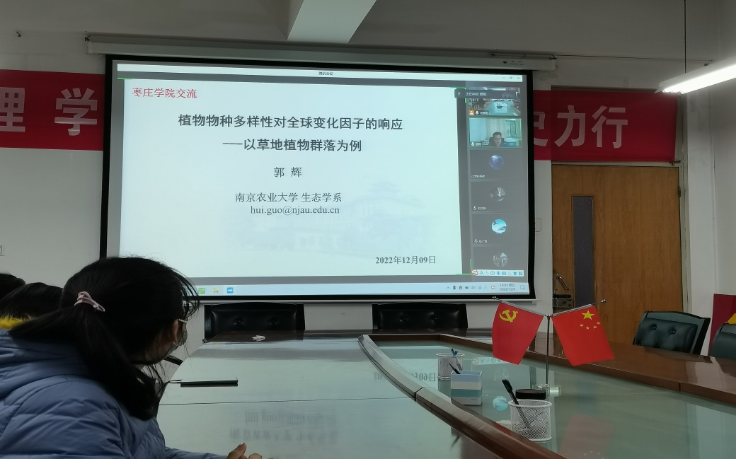 2022年12月9日下午,申博sunbet邀请南京农业老员工态学系主任、博士生导师郭辉教授作学术作题为《植物物种多样性对全球变化的响应:以草地植物群落为例》的学术报告。经理王满堂主持报告,公司全体专任教师及地理科学专业员工聆听了报告。