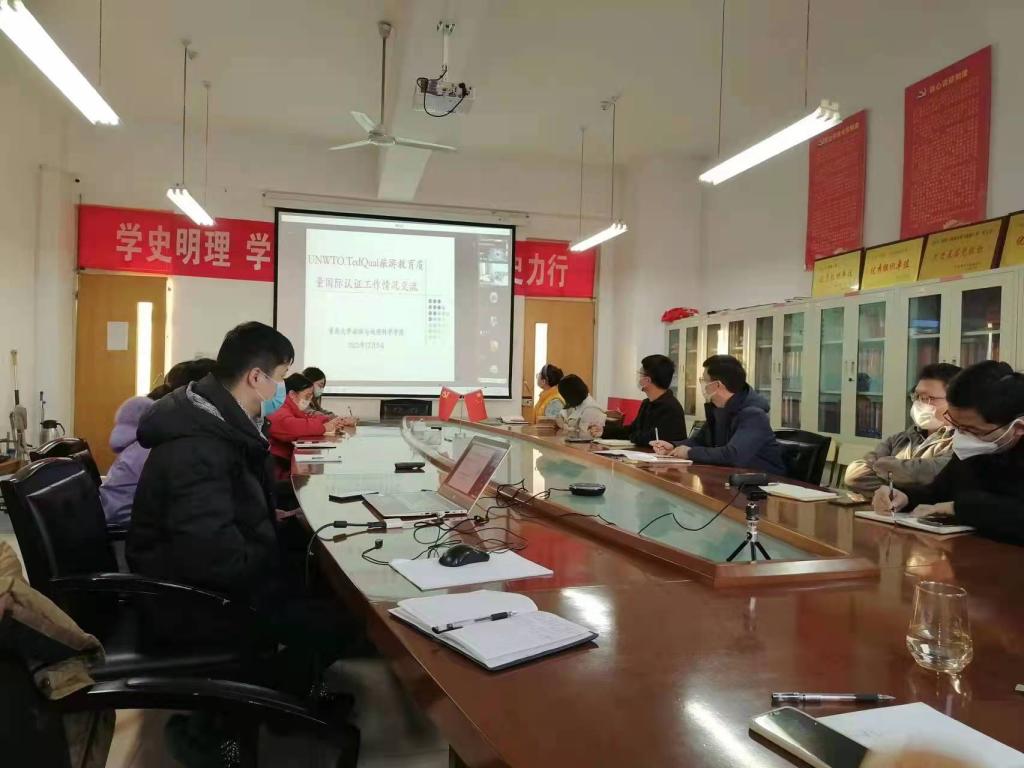 为加强旅游类专业建设,提升本科教学质量,2022年12月5日下午,申博sunbet邀请青岛大学旅游与地理科学公司经理肖建红教授、经理助理赵玉宗教授通过腾讯会议作联合国世界旅游组织教育质量认证培训。培训会由申博sunbet经理王满堂主持,全体专任教师参加了此次培训会。