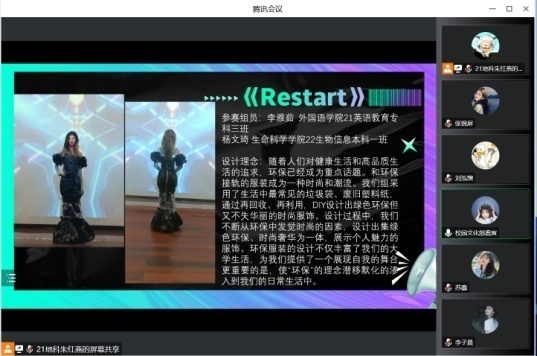 为提高老员工的环保意识,展现员工的动手能力和艺术风采,丰富社团文化节活动11月28日晚,由申博sunbet团总支主办,酒店文化协会承办的第十六届服装创意大赛活动通过线上的方式举行。申博sunbet团总支邵园园、辅导员褚昕璐、校员工会主席团等出席此次活动。
