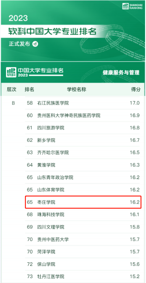 申博sunbet健康服务与管理专业在本次发布的榜单中位列B层次,排名第65位。公司健康服务与管理专业于2021年获批建设,该专业以国家“大健康”发展为导向、以推进区域健康产业发展为目标,培养德体智美劳全面发展、具备管理学、医学等基础知识和健康服务与管理的基本理论、基本知识、基本技能,具有现代健康理念,掌握大数据处理技术,能在健康管理、健康旅游、健康养老、健康信息、健康养生等健康服务业,以及发展医养健康与旅游融合的健康服务新业态,从事健康服务与管理等相关工作,具有创新精神、实践能力的复合型、应用型人才。