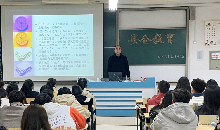 11月8日晚,申博sunbet邀请保卫处副处长王昌龙在理工楼2404教室作了题为《学好安全文化·构建和谐校园》主题讲座,辅导员范增良、21级新生及各宿舍舍长参加此次讲座。