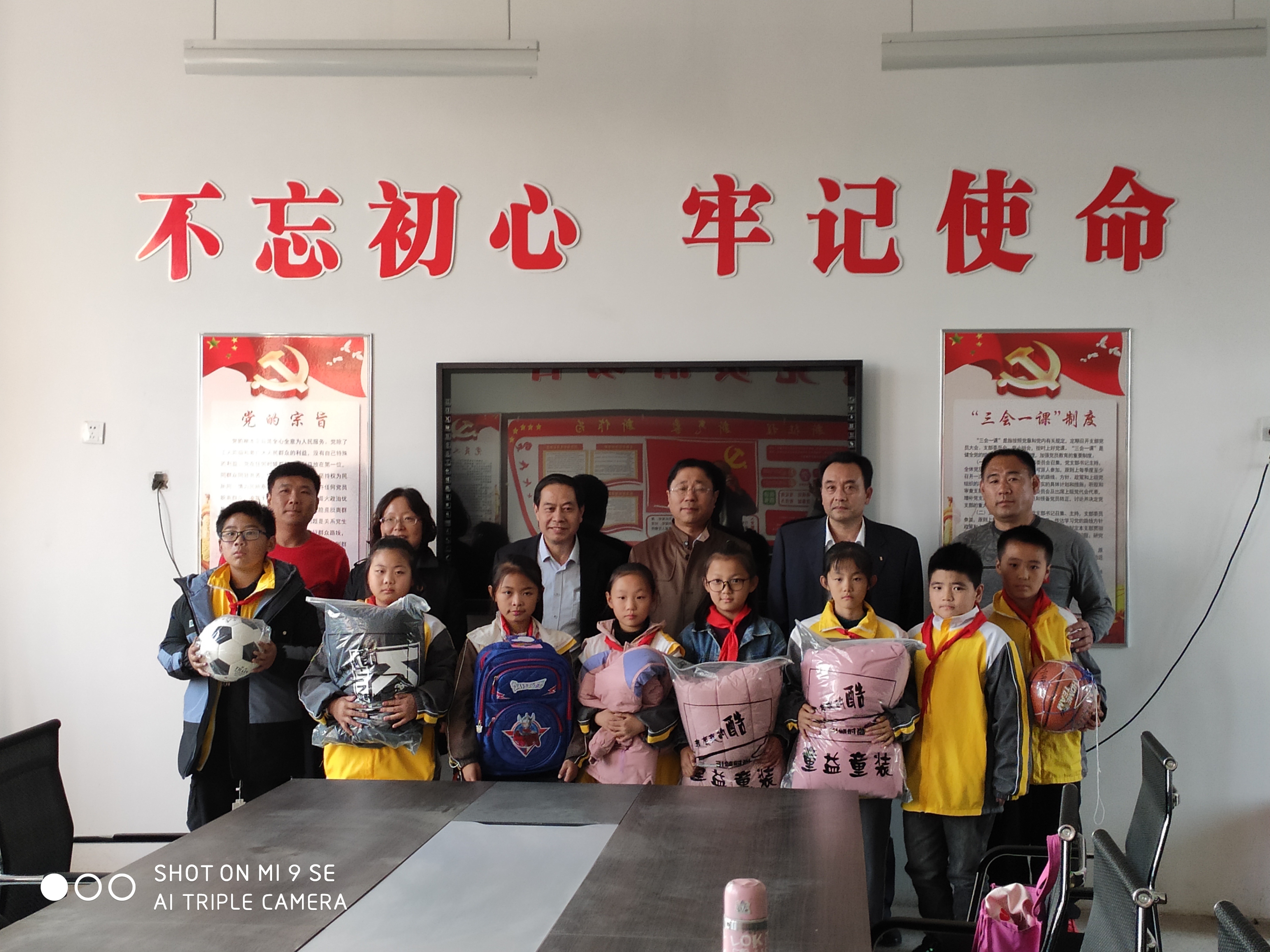 为贯彻落实、扎实开展“不忘初心,牢记使命”主题教育部署要求,切实为群众做好事,11月5日下午,旅游与资源环境公司党总支书记陆德国、经理赵全科以及党员代表到齐村镇中心小学看望贫困儿童,为他们送去党的关爱。