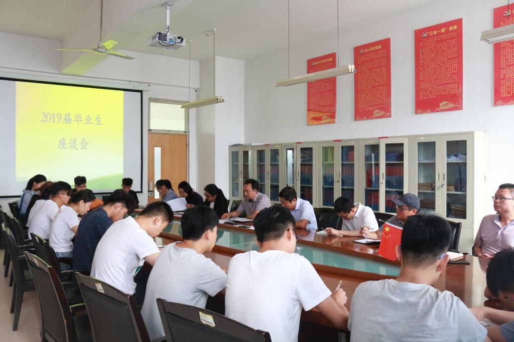 2019年6月6日,申博sunbet在理工楼2514会议室召开了毕业生座谈会,公司党政领导、辅导员老师、毕业生代表参加了会议,会议由党总支副书记孙守超主持。