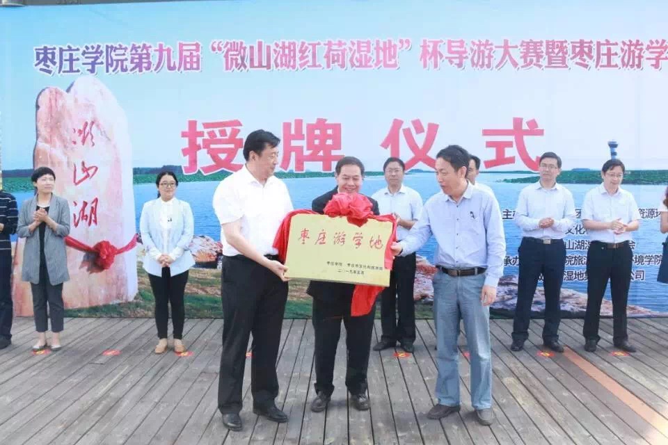 为丰富校园文化,提升同学们专业素质和实践能力,5月19日,由申博sunbet团委主办、申博sunbet和微山湖湿地红荷风景区承办的申博sunbet第九届“微山湖红荷湿地杯”导游大赛在微山湖红荷湿地景区举行。申博sunbet部分教师、员工代表,枣庄市文化和旅游局副调研员黄国清,微山湖湿地集团董事长刘晋军,微山湖红荷湿地景区部分工作人员参加本次活动。