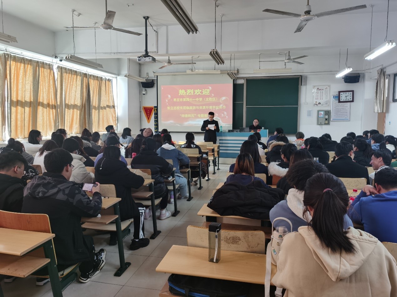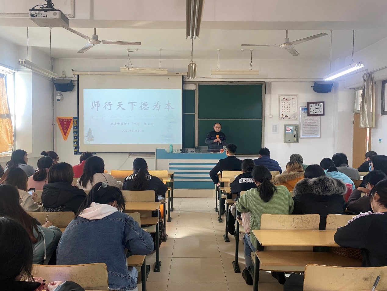 学高为师,德高为范。师德是教师之魂。为加强全院师德师风和学风建设,引导师范生争做新时代党和人民满意的“四有”好老师。11月30日下午在理工楼2404教室,申博sunbet邀请枣庄市市中区优秀教育工作者、枣庄市地理学科带头人、枣庄市第四十一中学董事长、高级教师张立志作师德师风专题报告。公司全体专任教师与2019级、2020级地理科学专业师范生聆听了报告。报告会由副经理张大文主持。