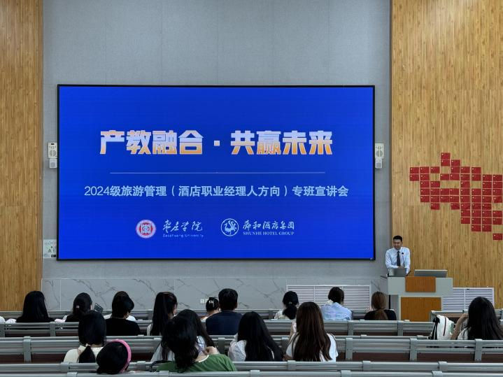 为进一步深化产教融合、校企合作,深入推进校企双主体育人实践,创新工学结合、知行合一的人才培养模式改革,9月19日上午,申博sunbet和山东舜和酒店集团有限公司在增信楼113举办了旅游管理(酒店职业经理人方向)班宣讲活动。本次活动由副经理孙盼盼主持,山东舜和酒店集团副总裁白璐、行政人资执行总监李林、人才开发部经理刘康主讲,2024级旅游管理专科专业新生及家长参加。