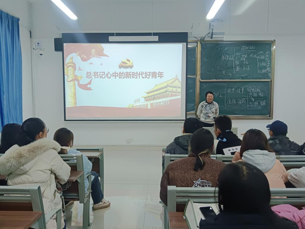 活动伊始,邵园园围绕习近平总书记关于青年工作的重要思想,结合具体事例,从做有理想的青年、做敢担当的青年、做能吃苦的青年、做肯奋斗的青年四个方面进行讲述,带领同学们深入学习新时代好青年的内涵,引导同学们自觉坚定听党话、感党恩、跟党走的青春步伐。邵园园强调,当代青年要成为担当民族复兴大任的时代新人,必须立大志、明大德、担大任,不断提升思想道德素质和法治素养,争做新时代好青年。