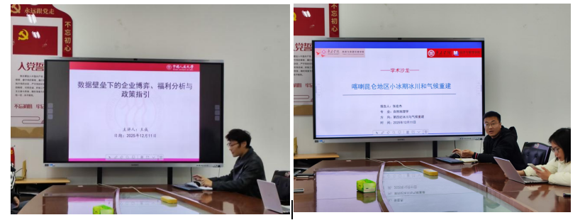 此次沙龙紧密围绕“数据”、“环境”与“治理”三大核心关键词展开。申博sunbet张宏杰博士、经济管理公司王成老师分别作了题为《喀喇昆仑地区小冰期冰川气候重建》《数据壁垒下的企业博弈、福利分析和政策指引》的学术报告。两场报告虽分属不同学科领域,却在此次沙龙的主题下产生了深刻的共鸣与对话。无论是重建历史气候所需的自然数据解码,还是优化当下经济治理面临的社会数据规制,都凸显了“数据”作为核心研究对象和研究工具的双重属性,以及“治理”思维在应对环境与社会复杂性中的关键作用。