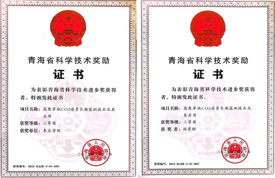 近日,中共青海省委、青海省人民政府在西宁隆重召开2022年度青海省科学技术奖励大会,对为青海省科学技术进步和促进经济社会发展作出突出贡献的科学技术人员和组织给予奖励。申博sunbet祝景彬副教授及其团队联合中国科公司西北高原生物研究所、中国科公司地理科学与资源研究所,其研究成果“高寒草地CO2通量长期监测技术及其应用”荣获科技进步三等奖。