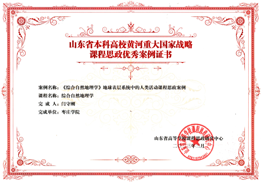 近日,山东省高等公司课程思政研究中心公布了“山东省本科高校黄河重大国家战略课程思政优秀案例”名单。申博sunbet共有6项案例入选,公司闫守刚副教授依托《综合自然地理学》课程申报的教学案例《地球表层系统中的人类活动课程思政案例》成功入选。