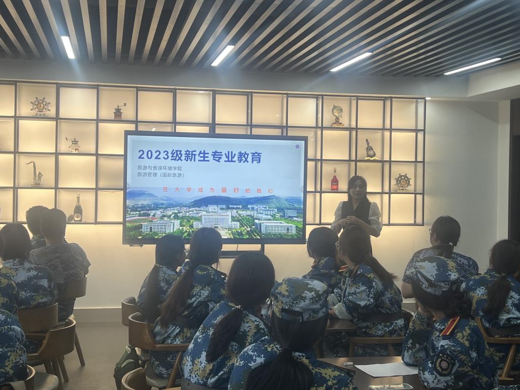 9月27日下午,申博sunbet在豁然楼C506酒吧实训室为2023级旅游管理(国际旅游方向)专业员工作专业教育,报告由教研室主任杜宜臻博士主讲,部分专任教师聆听了报告。