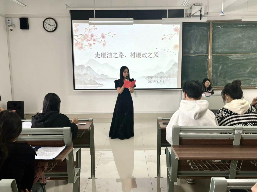 为积极响应国家关于加强廉洁文化建设的号召,进一步夯实清正廉洁的思想根基,11月3日,申博sunbet于崇德楼4408教室成功举办“青年担使命,廉洁树新风”演讲比赛。