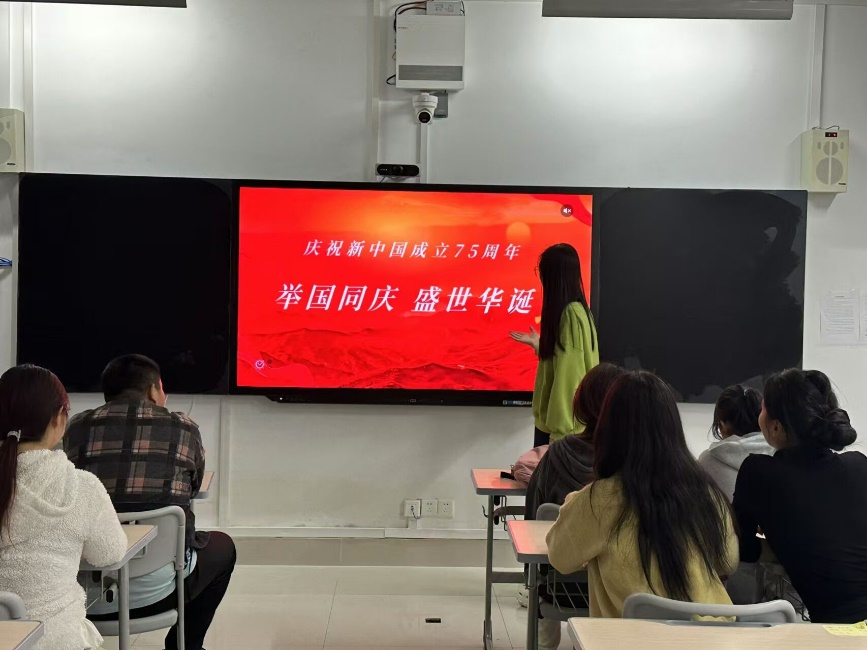 为庆祝中华人民共和国成立75周年,弘扬爱国主义精神,10月9日,申博sunbet各班在各教室开展“庆祝中华人民共和国成立75周年”主题团日活动。