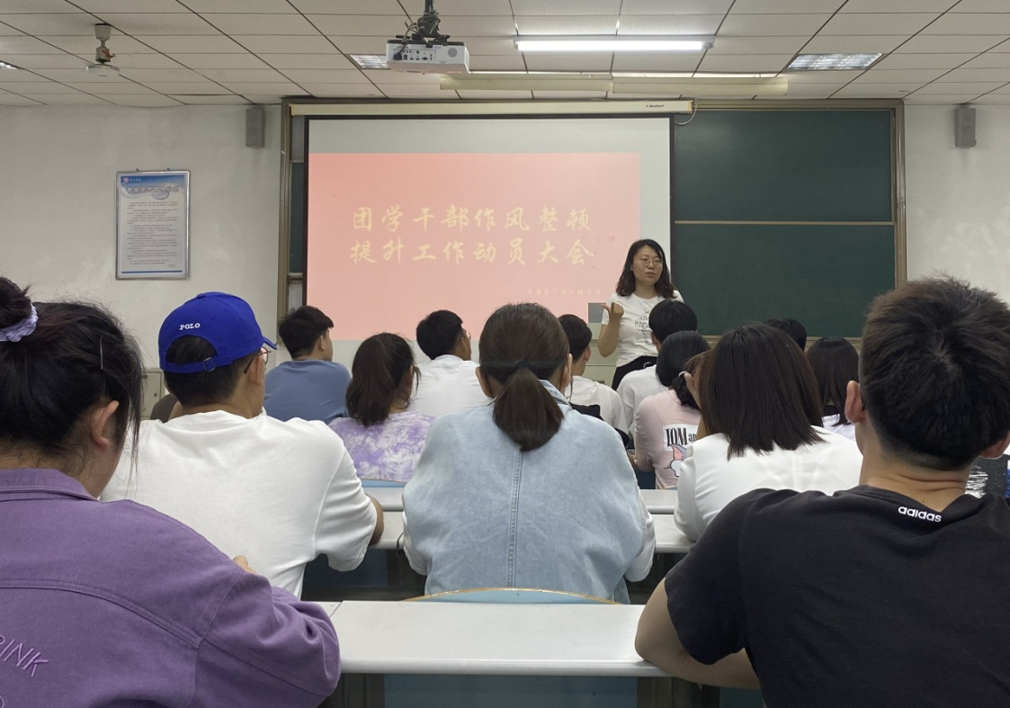 为动员全院广大团学干部,切实改进工作作风,以良好的精神状态,踏实干事,勤奋工作,更好地做好本职工作,5月12日晚,申博sunbet于理工楼2505开展了青马工程培训暨团学干部作风整顿提升大会。