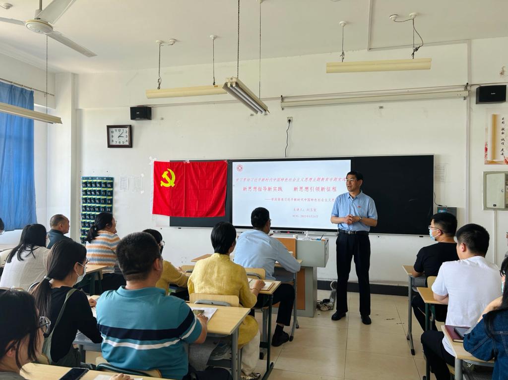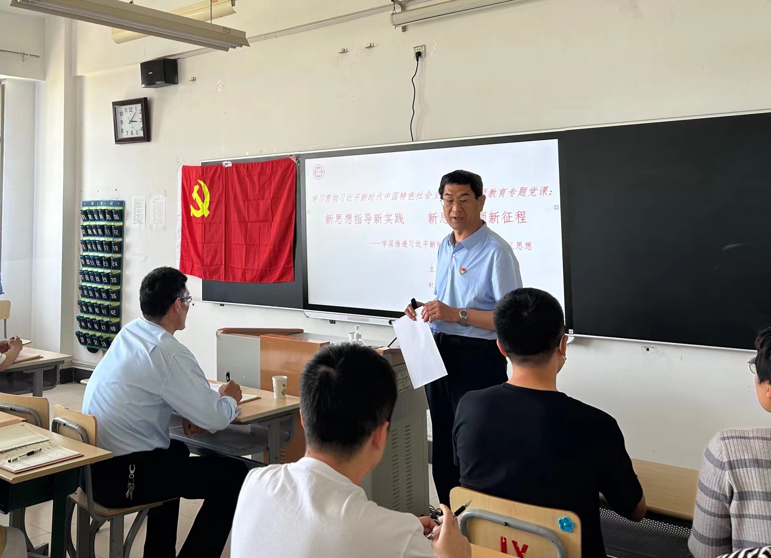 为贯彻落实公司党委关于主题教育“三个一百”专题党课的安排部署,5月24日下午,申博sunbet在理工楼2401教室组织开展学习贯彻习近平新时代中国特色社会主义思想主题教育专题党课教育活动,公司全体师生党员参加,公司党委主题教育第七指导组组长刘书玉到场指导。