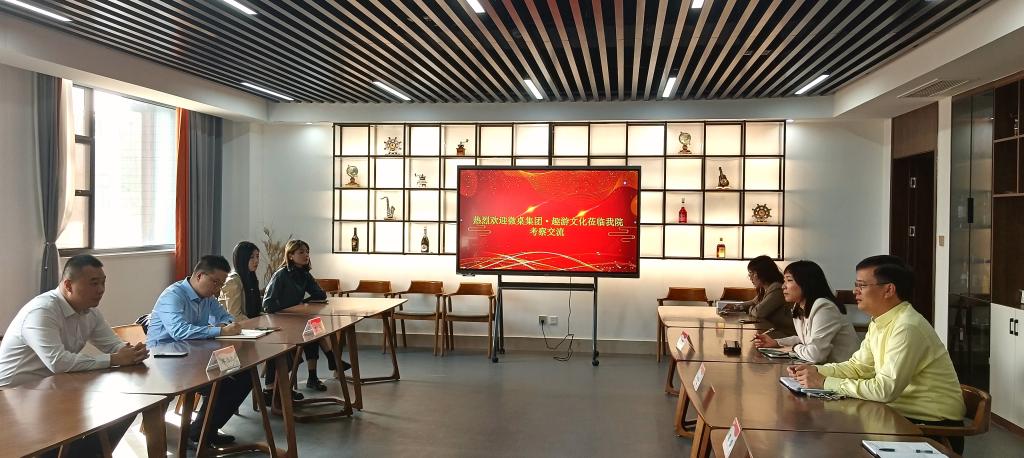 10月16日下午,山东微桌科技服务有限公司董事长李浩然、趣游文化(山东)有限公司副总经理李宁一行5人来申博sunbet交流。双方在豁然楼五楼C508咖啡实训室举行座谈,经理王满堂、旅游类专业相关负责人及部分专业教师参加了交流座谈。
