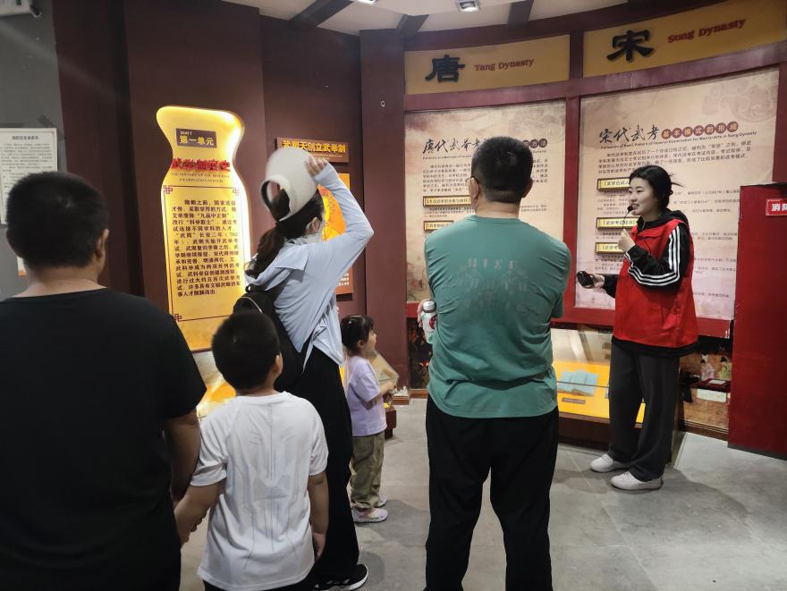 在台儿庄古城,员工们担任景观解说员,向游客讲解古城的历史背景、文化特色以及景区的红色旅游资源。通过亲身参与景区的讲解工作,员工们不仅提高了自己的专业素养,还在实际操作中学会了如何与游客进行有效互动,如何将文化元素融入到旅游服务中,提升了他们的沟通能力和现场应变能力。