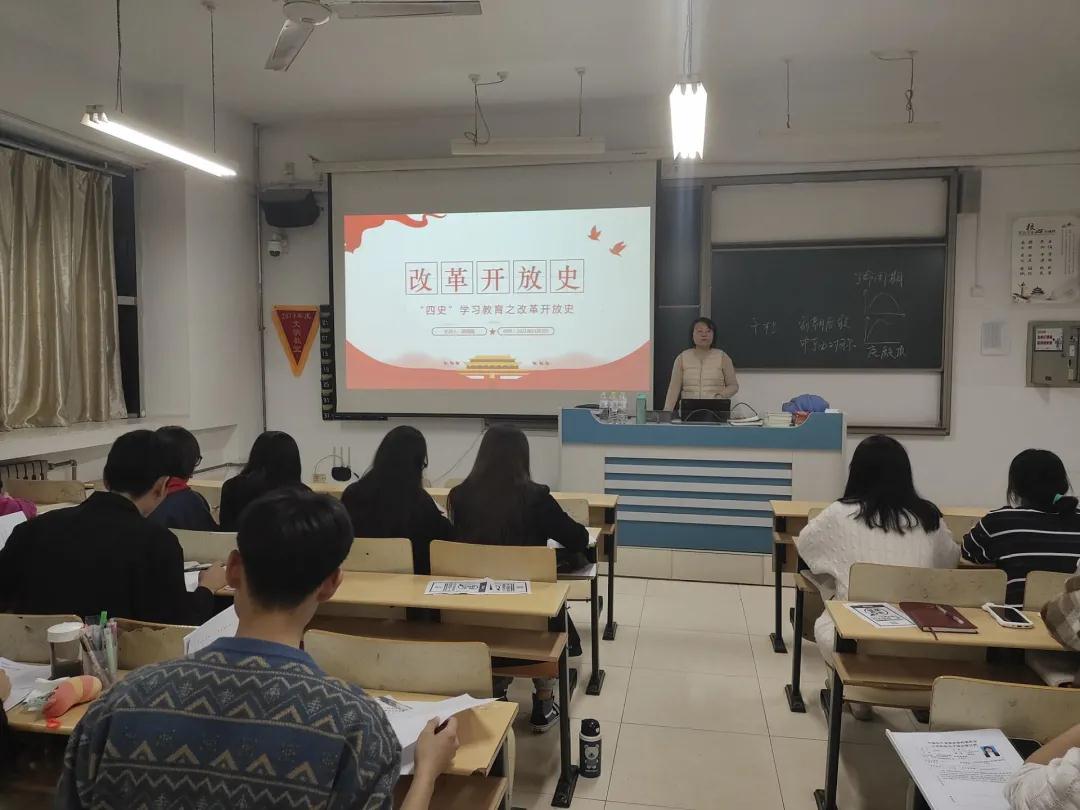 邵园园对四史中的改革开放史进行了详细地讲授。从恢复高考、设立经济特区、南方讲话、提出和平与发展的时代主题等讲解了邓小平同志生平的事迹。改革开放为现代社会经济的快速发展奠定了良好的基础。在此期间,由国家实行的家庭联产承包责任制,解决了人民的温饱问题。历史证明,改革开放是决定当代中国命运的关键一招,也是决定实现“两个一百年”奋斗目标、实现中华民族伟大复兴的关键一招,是坚持和发展中国特色社会主义的必由之路。