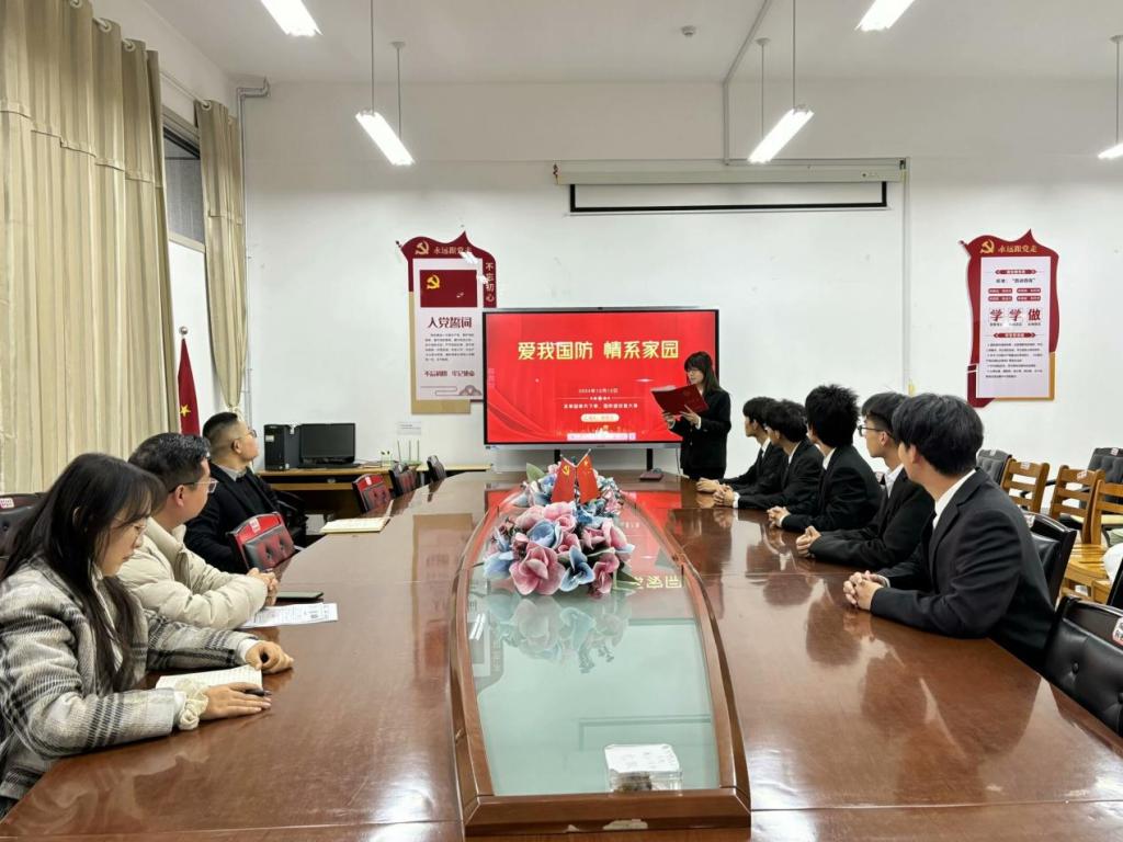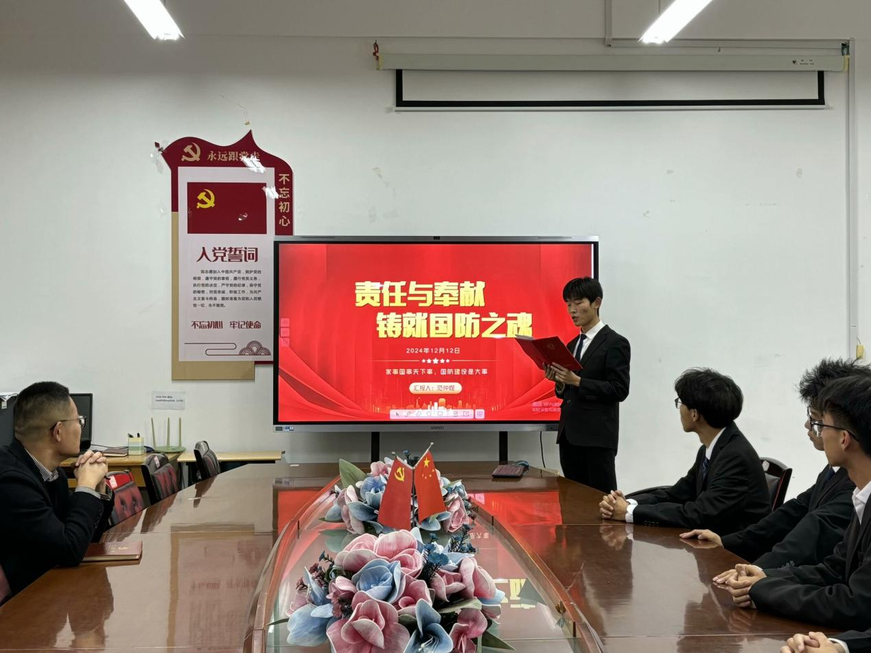 为进一步强化国防教育,引导青年员工厚植家国情怀,12月12日,申博sunbet员工党支部在豁然楼A415会议室开展“爱我国防”主题演讲比赛,辅导员老师范增良、周赢、冯淑鹃出席本次活动,公司员工党员积极参加。