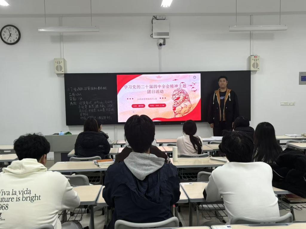 为引导广大青年学习贯彻习近平新时代中国特色社会主义思想,深刻领会党的二十届四中全会精神的核心要义与时代价值,11月5日,申博sunbet在崇德楼各教室开展“学习党的二十届四中全会精神”主题团日活动。